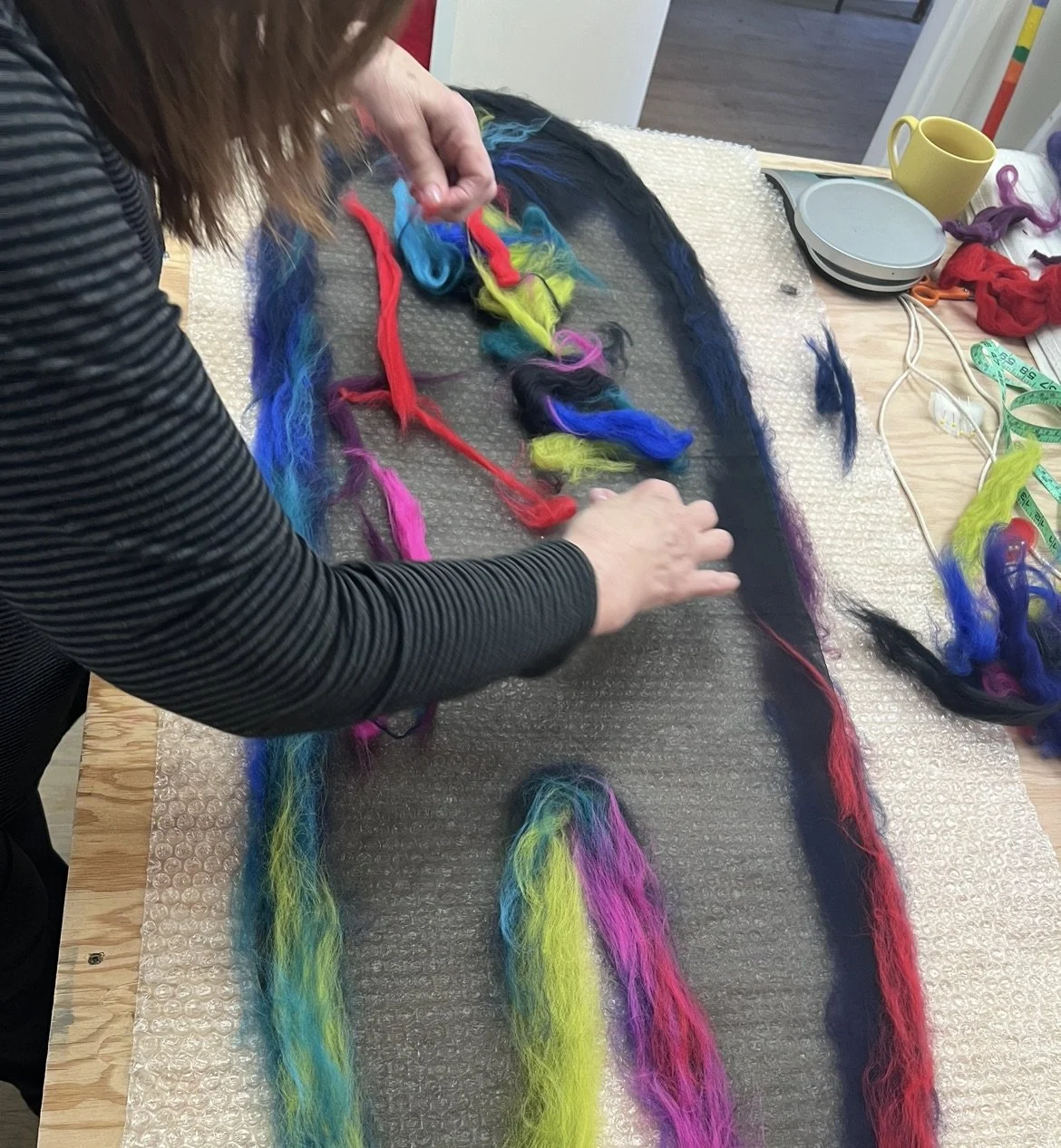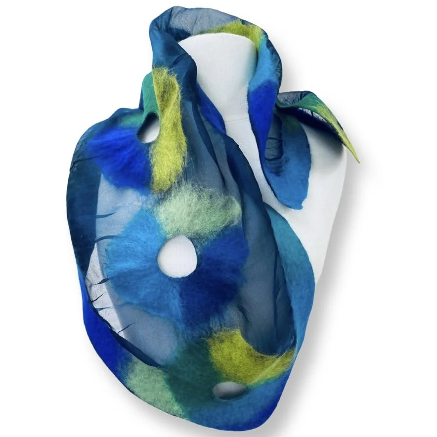 Join us for a fun and creative class where you will craft a unique scarf accessory from start to finish. I will introduce you to various felting techniques and layouts using silk fabric and fine merino wool in many colors. These techniques are useful for many other felting projects. You will gain plenty of hands-on felting experience during this class.